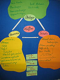 Ob Frühstück, Mittagessen, der Snack am Nachmittag oder die Geburtstagsfeier - Essen und Trinken in der Kindertagesstätte gehört zum Alltag und das Thema Ernährung ist sehr gut geeignet, um Zusammenhänge zu verdeutlichen: Welche Essgewohnheiten haben wir? Welche Auswirkungen hat unser Essverhalten auf Menschen in anderen Regionen der Welt oder auf die Natur und Umwelt. Hier können die Kinder aktiv werden. Im Supermarkt oder auf dem Wochenmarkt finden sie heraus, woher das Obst und Gemüse kommt und wie weit es schon gereist ist. Sie pflanzen selbst etwas an, pflegen und ernten und erleben wie viel Zeit und körperlicher Einsatz in der Gartenarbeit steckt. Sie verhandeln mit der Leiterin über den Speiseplan oder bieten beim Sommerfest selbstgemachte Speisen an. So lernen sie früh Zusammenhänge kennen und erleben, dass es Spaß macht, sich zu engagieren.